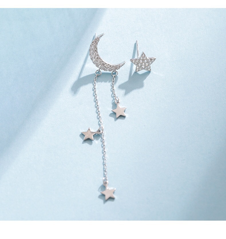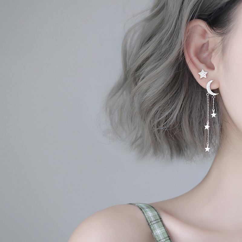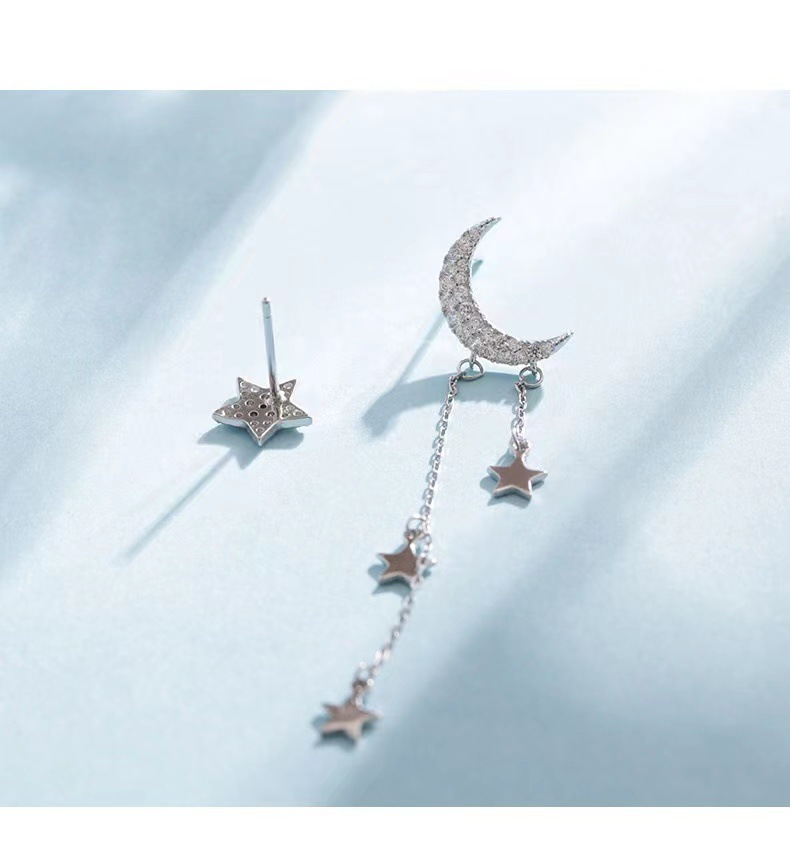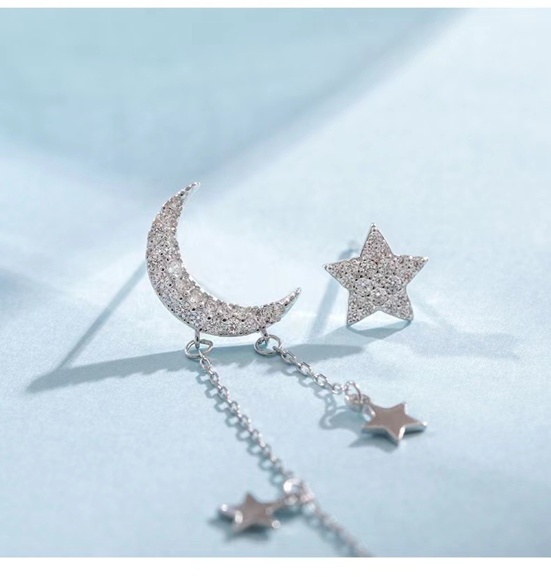 ¡Eleva tu estilo con estos impresionantes aretes de estrella y luna! Elaborados en plata s925 de alta calidad, estos aretes presentan un diseño asimétrico único adornado con gemas deslumbrantes que capturan la luz de manera espectacular.