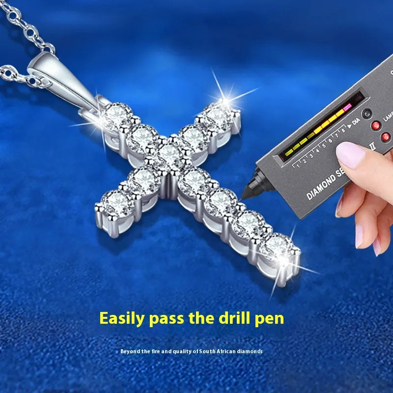 Abrace la elegancia y la fe con el Collar de Cruz de Plata Esterlina 925 con Moissanita, diseñado para mujeres que valoran el lujo y el significado. Elaborado a partir de plata esterlina de alta calidad y adornado con piedras brillantes de Moissanita, este collar ofrece un brillo deslumbrante, similar al del diamante, con durabilidad y sofisticación.