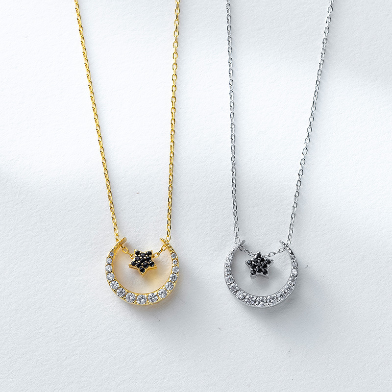 Collar de Plata S925 para Mujer con Diseño de Estrella y Luna