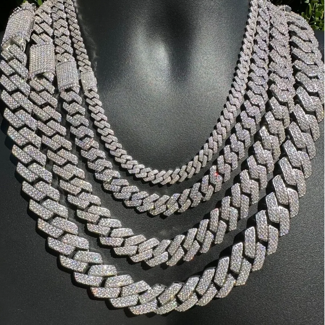 Hip Hop Fashion Brass Link Cuban Chain With 14K 18K Iced Out 5A Zircon 6mm-18mm Moissanite Cuban Bracelet Necklace Jewelry