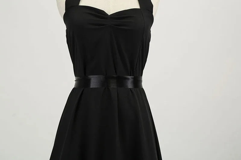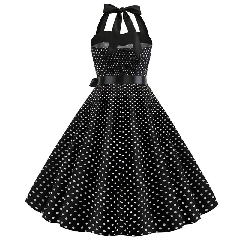 Vestido de fiesta con cuello Halter para mujer, vestidos Vintage con espalda descubierta, vestido Retro Rockabilly Swing, vestido veraniego por debajo de la rodilla elegante para mujer